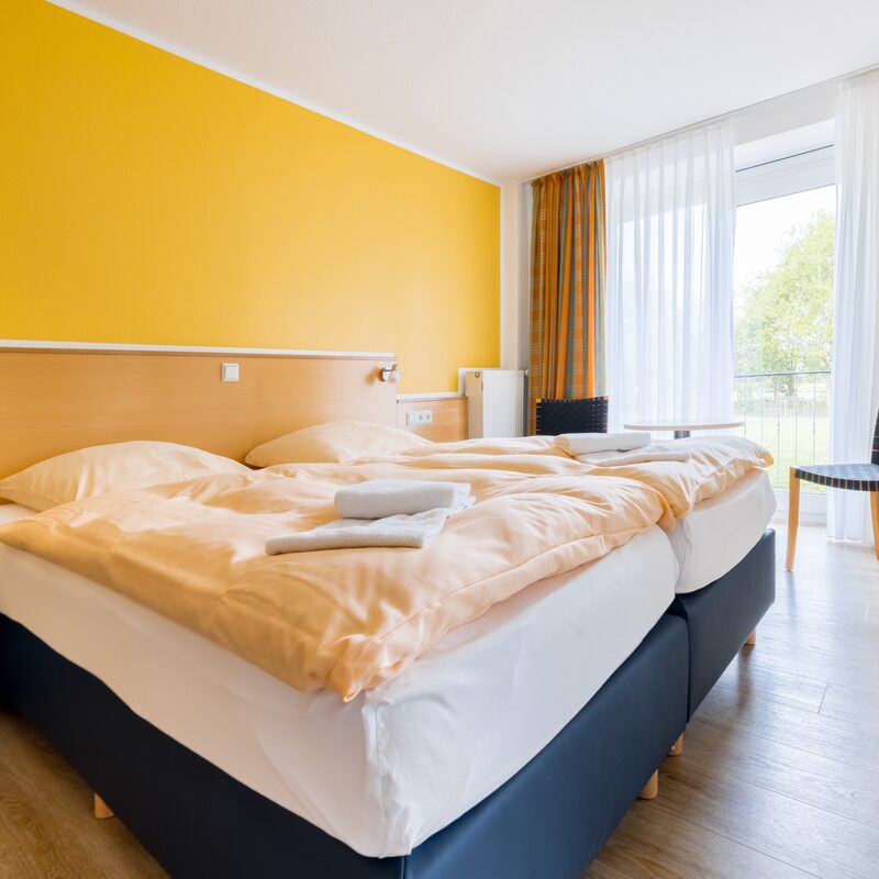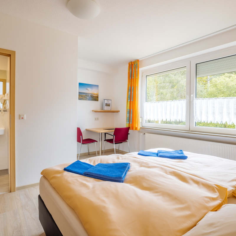 Unsere Doppelzimmer mit eigenem Bad sind teilweise mit Balkon ausgestattet. Einige haben zusätzlich Platz für ein Zustellbett.