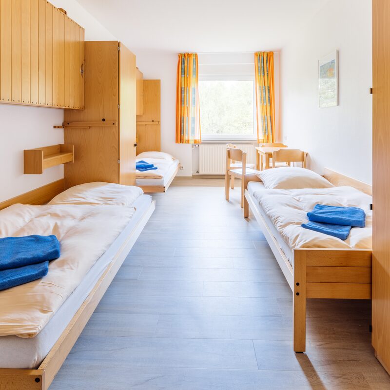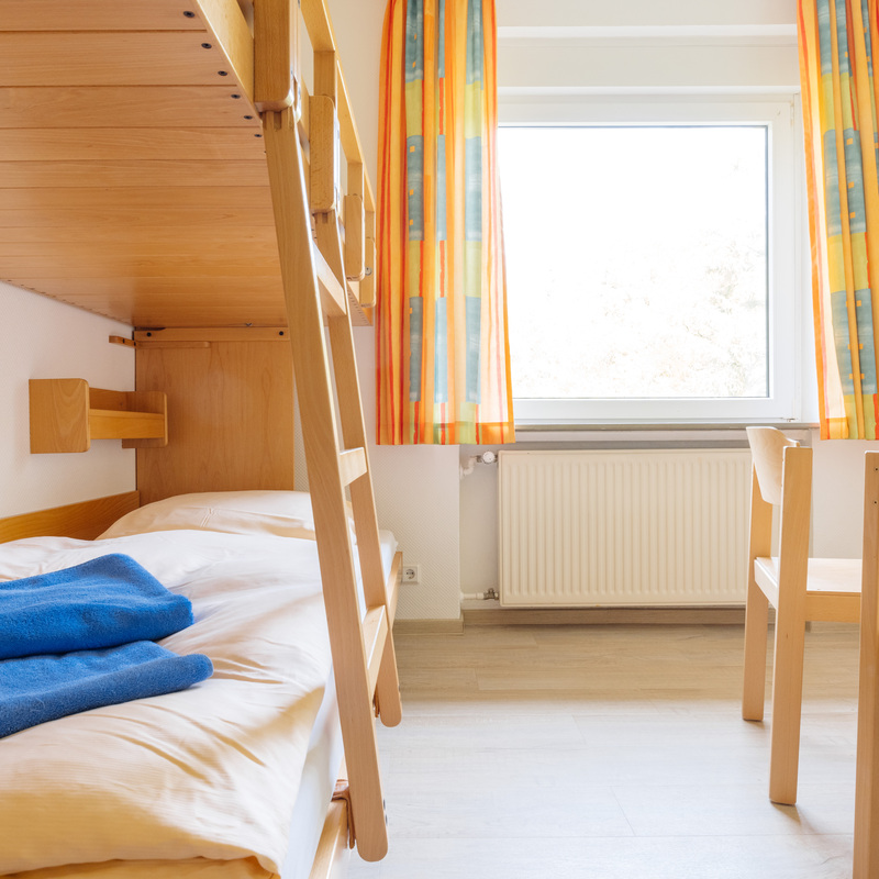 Sie möchten als Familie oder in der Gruppe günstig übernachten? Unsere Mehrbettzimmer sind hierfür bestens geeignet. Es gibt insgesamt 15 Mehrbettzimmer (drei bis fünf Betten, teils Etagenbetten). Die oberen Etagenbetten können weggeklappt werden, wenn sie nicht genutzt werden.